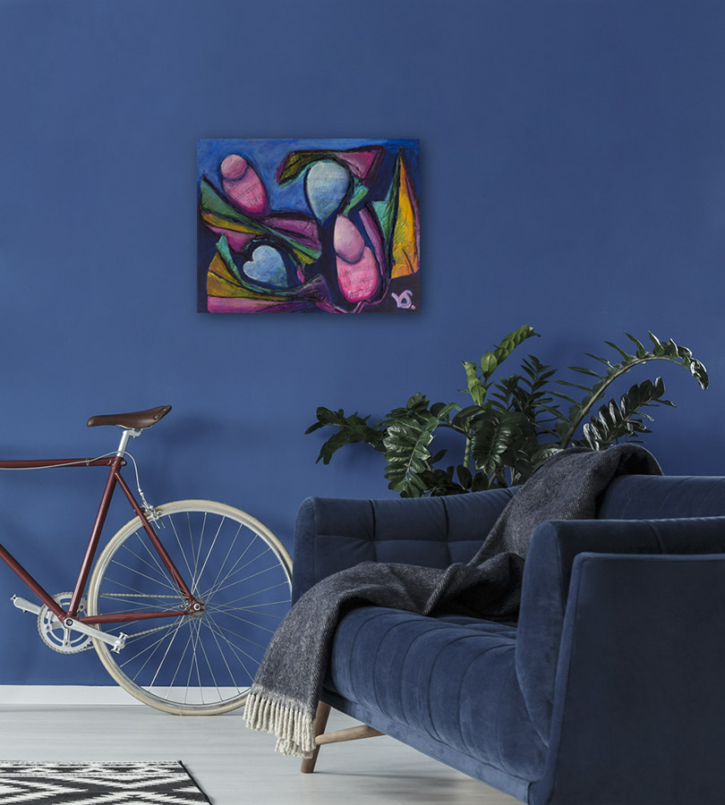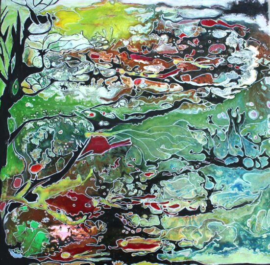 med forskellige materialer. Aktuelt arbejder jeg intensivt med akrylmaleri på lærred.