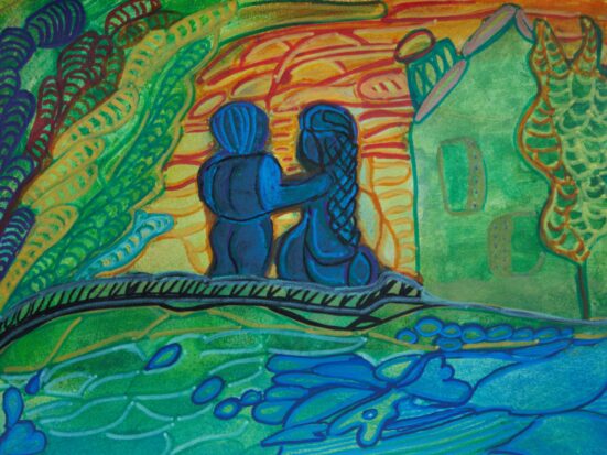 25 x 50 cmAkrylmaleri – Far og datter