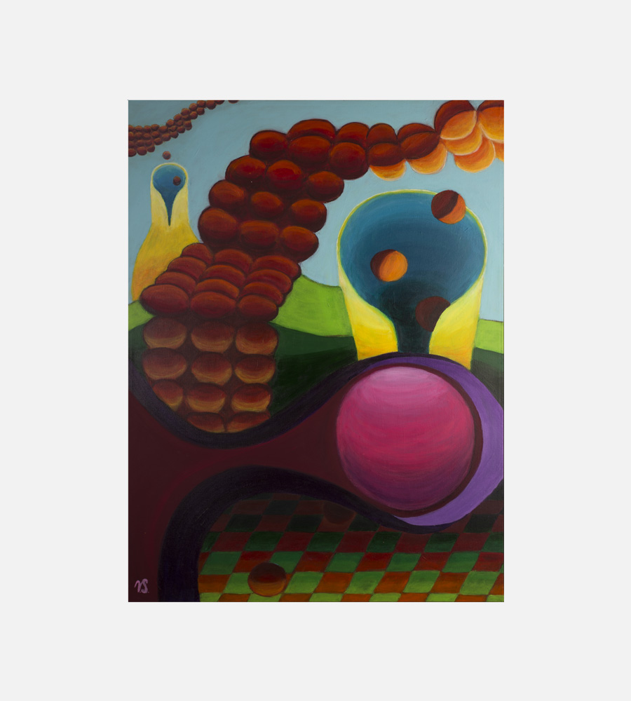Akryl på lærred. Leveres i sølvramme.