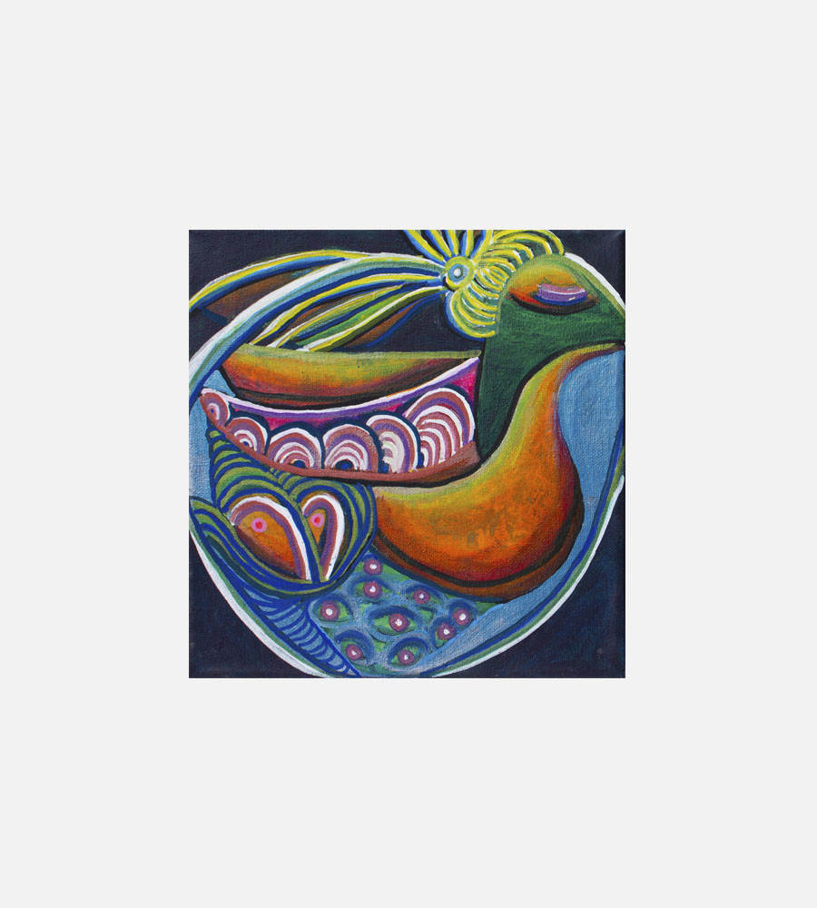 Akryl på lille lærred. Maleriet er skabt i mønstret prikkunst med malerpen.
