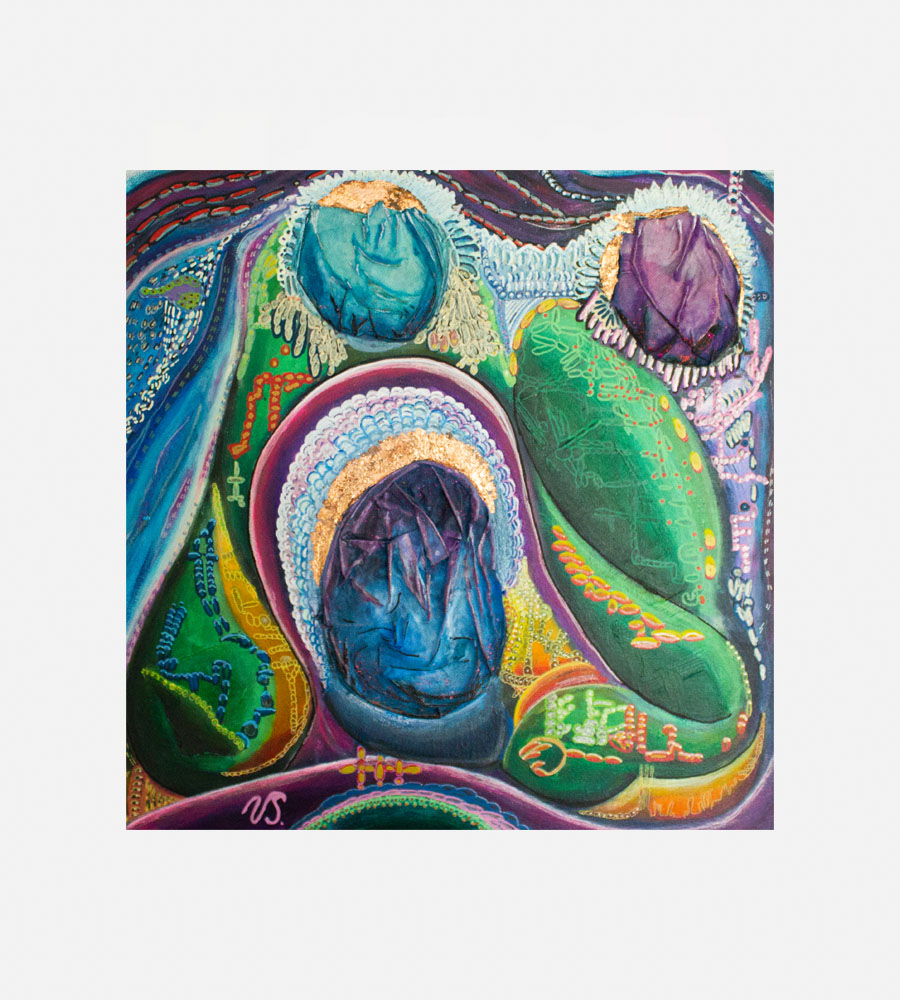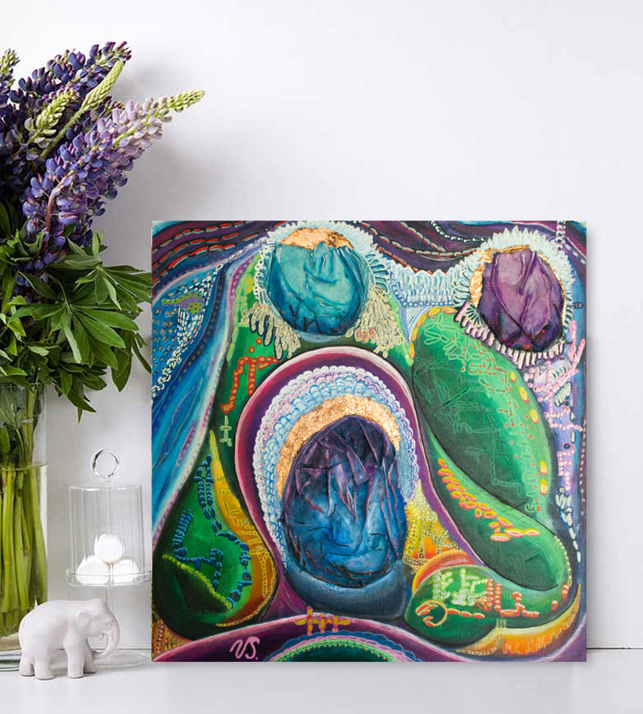 Akryl på lærred – mixed media – prikkunst.