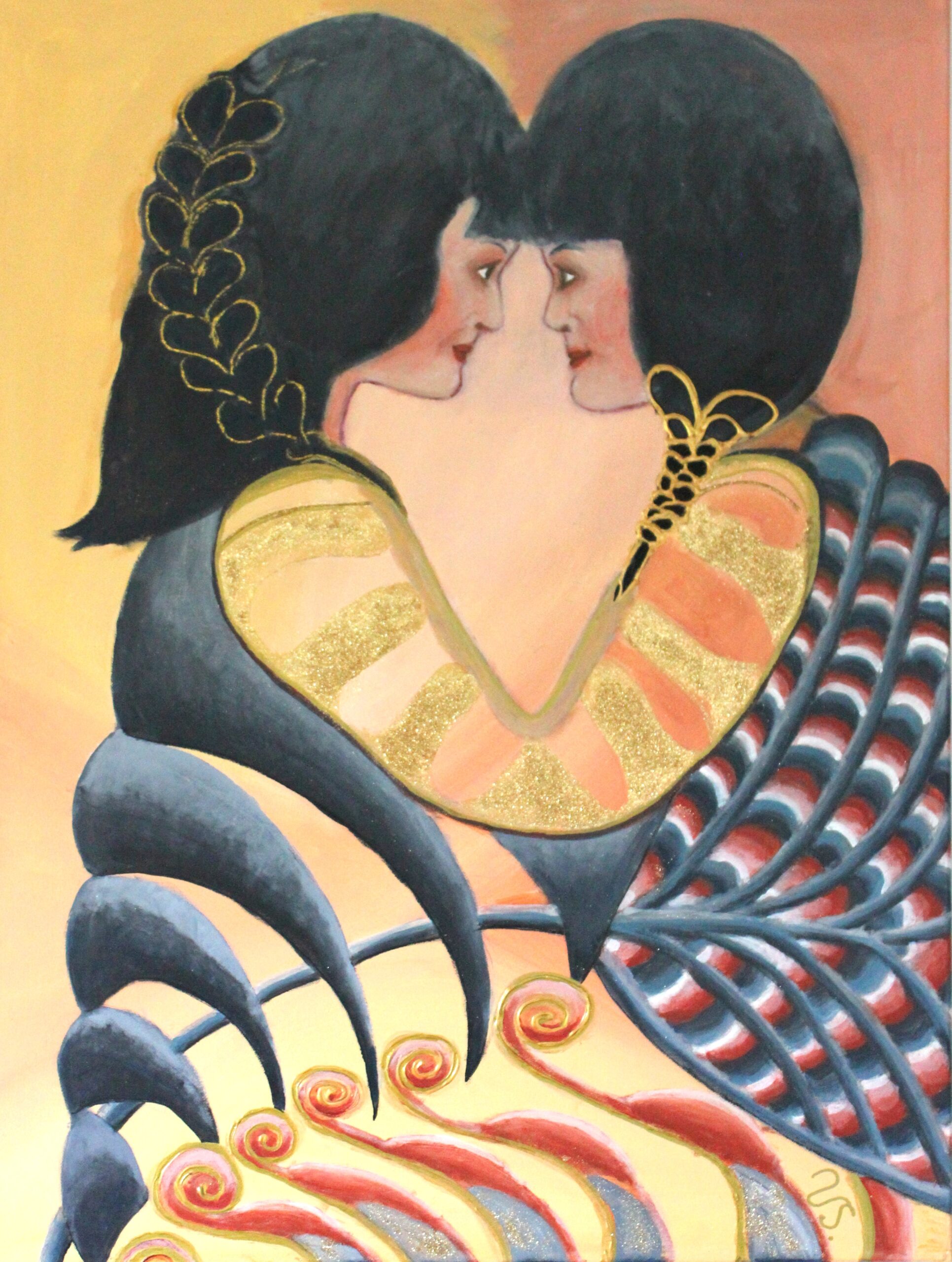 Motivet er to kvinder, der tilsammen danner en hjerteform, og som har svøbt sig i kærlighedens kåber.